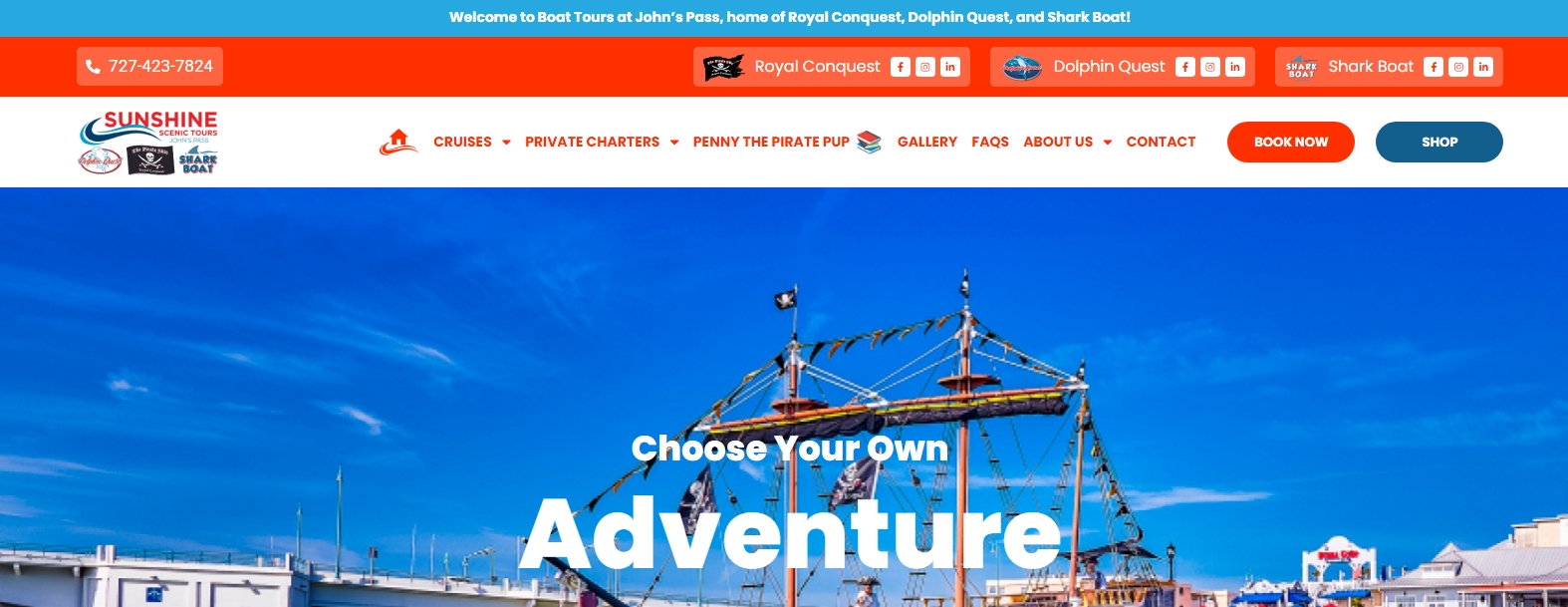 With years of experience and a dedicated team, we proudly showcase the best of our coastal paradise. Our Royal Conquest Pirate Ship provides an authentic Gasparilla-style experience, allowing guests to dive into exciting pirate lore while enjoying beautiful waterfront views.